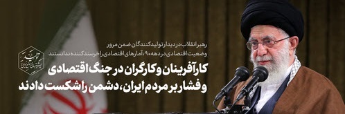 رهبر معظم انقلاب اسلامی صبح امروز (یکشنبه) در دیدار جمعی از تولیدکنندگان و فعالان صنعتی، کارآفرینان و فعالان اقتصادی را افسران، و کارگران را رزمندگان با اخلاص و با صفای دفاع مقدس در مقابل جنگ اقتصادی با امریکا خواندند و با اشاره به سخنان صریح مسئولان امریکا درباره شکست خفتبار آنها در این نبرد سنگین افزودند: مسئولان پرتلاش با «ایجاد سند نقشه راهبردی صنعتی» و «مدیریت، هدایت، نظارت و حمایت از تولید» مسیر کاهش و رفع آسیبها و «شتاب گرفتن تولید، اشتغال و پیشرفت کشور» را با تلاش بیشتر ادامه دهند تا آثار این روند در زندگی مردم نمایان شود